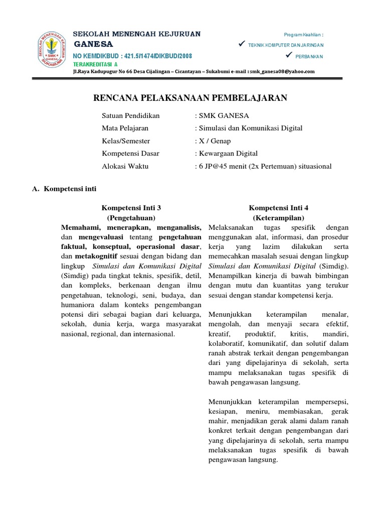 Page | 1 rencana pelaksanaan pembelajaran 1 satuan pendidikan : Contoh rpp 1 lembar mapel ilmu pengetahuan alam (ipa) download disini. Simulasi dan komunikasi digital kelas/semester : Jual cd rpp mapel simulasi dan komunikasi digital kls x rpp 1 lembar rpp daring dan luring terlengkap dengan kualitas terbaik. Dalam menyusun rpp simulasi dan komunikasi digital kurikulum 2013 revisi 2017/2018 dan rpp 1 lembar 2019/2020/2021 kelas x semester 1 dan 2 pada tingkat smk/mak, di era covid 19 untuk semua sekolah sesuai himbauan pemerintah wajib melakukan pembelajaran daring walaupun sebagian tatap muka.