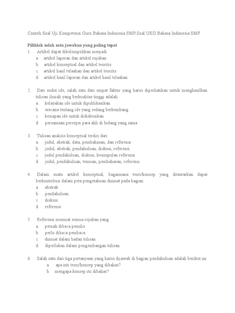 Mgmp Bahasa Indonesia Jaksel Adakan Ujian Online Kaji Ukg 2019 Melalui Ponsel Kumpulan Artikel Dan Berita Pendidikan Indonesia Berbasis Tehnologi Digital from pendidikan.id Beli buku bahasa indonesia online berkualitas dengan harga murah terbaru 2021 di tokopedia! .guru (ukg) terbaru mata pelajaran (mapel) bahasa indonesia smp tahun di situs berita ukg, wartasolo.com. Kali ini, kita akan mengulik bagaimana bahasa indonesia menjadi bahasa persatuan. Salah satunya adalah contoh soal ukg bahasa indonesia smk online dan juga mapel lainnya mulai dari tingkat sekolah paud, tk, sd, slb, smp, sma dan smk sederajat secara lengkap disini. Semua komik di website ini hanya preview dari komik aslinya, mungkin terdapat banyak kesalahan bahasa, nama tokoh, dan alur cerita. 1.1.1 menganalisis karakteristik perkembangan bahasa anak usia sd. Semoga dapat menjadi bahan belajar sebelum mengikuti uji kompetensi guru (ukg) untuk bapak ibu guru bahasa indonesia, materi uji kompetensi guru atau materi ukg bahasa indonesia smp 0 ratings0% found this document useful (0 votes).