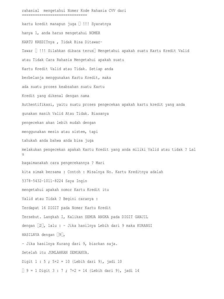 Cvv merupakan singkatan dari card verification value, sedangkan cvc singkatan dari card verification code. Ada istilah lain yang digunakan untuk menyebut cvv, yakni css atau cvv2. Kode cvv tidak hanya digunakan pada kartu kredit saja, tetapi juga pada. Kode cvv atau cvc di belakang . 3 atau 4 digit nomor cvv pada sebuah kartu kredit/debit dari bank bri.